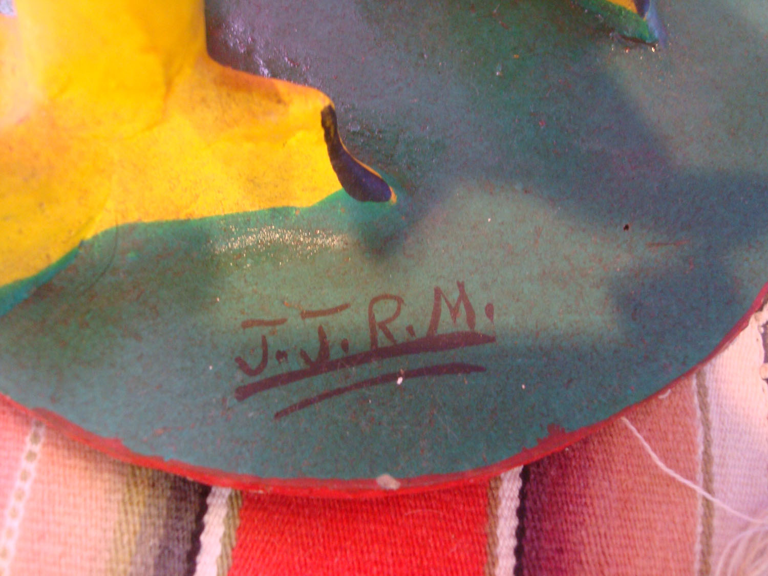 This is an amazing piece of Mexican vintage fine/folk art! Condition is excellent. Size: 14 inches diameter. Price: $350.